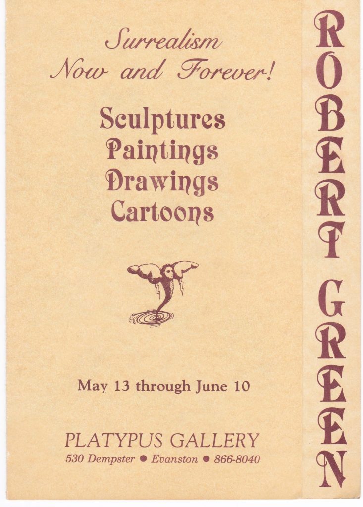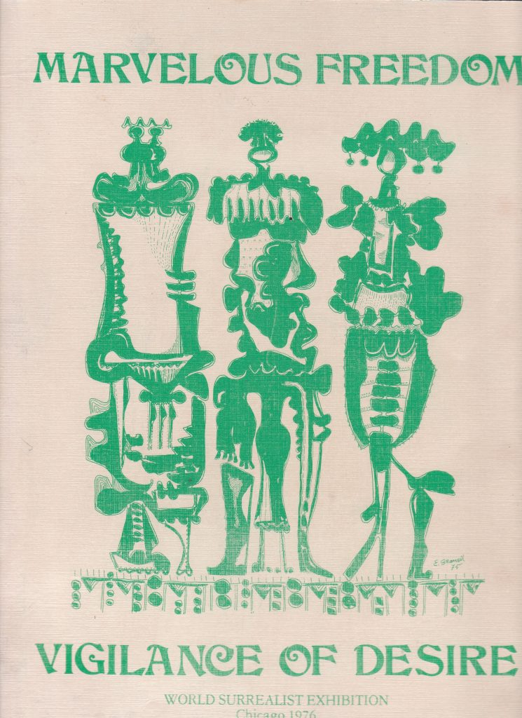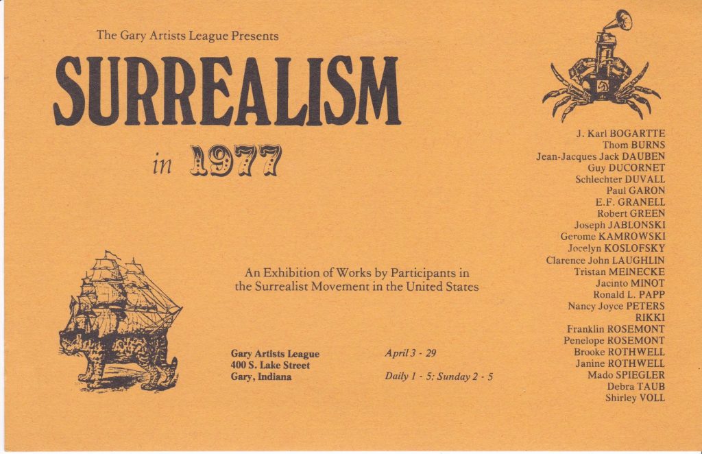 Above image is from the Black Swan Gallery founded by Robert Green at 500 N. LaSalle, Chicago in 1976. It opened to the World Surrealist Exhibition titled “Marvelous Freedom, Vigilance of Desire”. This international exhibition included over 500 works by some 130 participants from 30-odd countries— making it the largest collective surrealist exhibition in history.